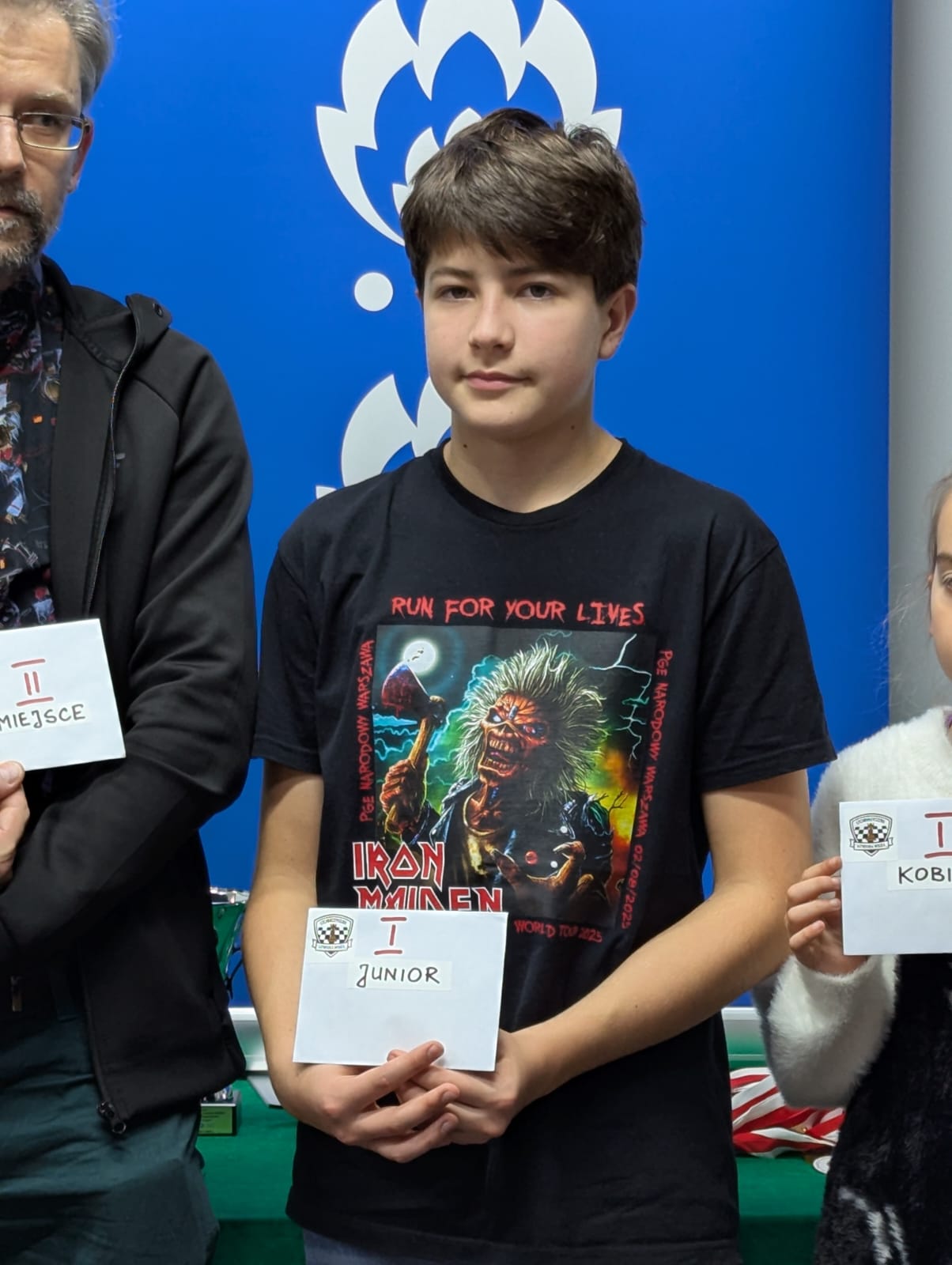 Wspaniały wynik osiągnął Miłosz Boncela, wygrywając klasyfikację juniorów! Startując z 12 pozycji, Miłosz zdobył 6,5 punktu z 9 partii i uplasował się na V miejscu w całym turnieju.