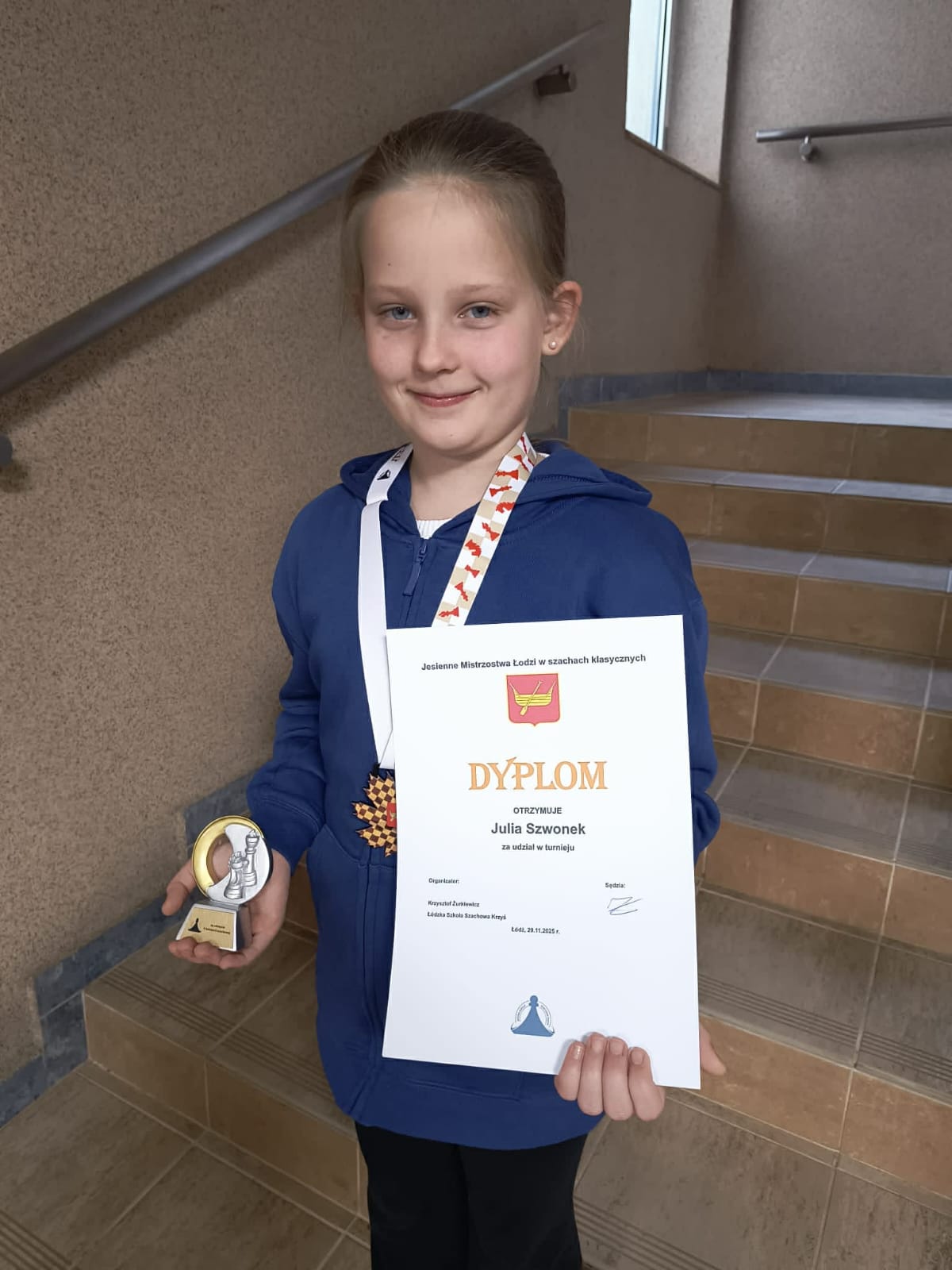 - Julia Szwonek- I miejsce wśród dziewczynek w Jesiennych Mistrzostwach Łodzi w szachach klasycznych i zdobycie V kategorii szachowej.