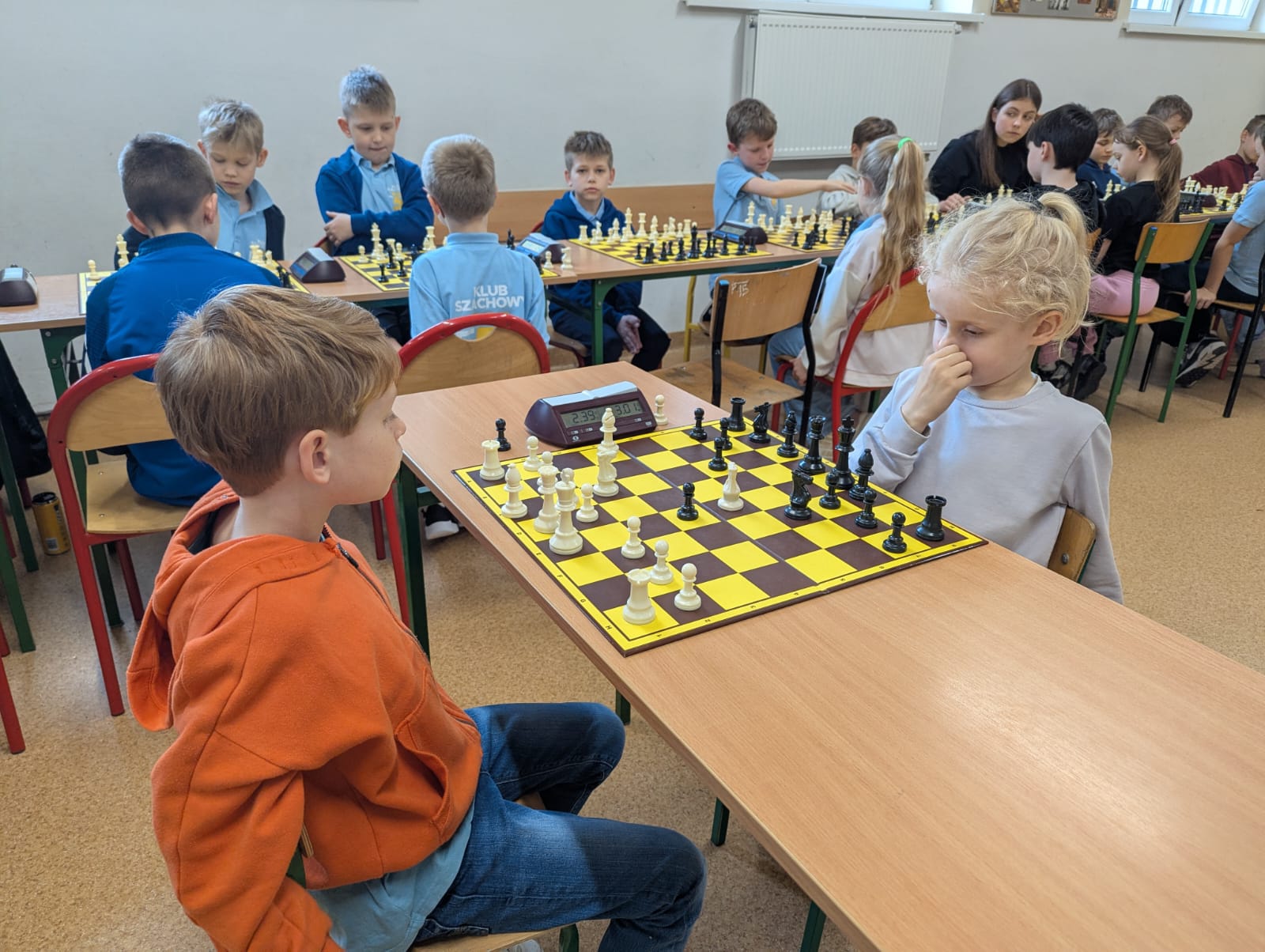 15 kwietnia w Szkole Podstawowej nr 5 w Skierniewicach odbyły się dni otwarte. Przyszli uczniowie wraz z rodzicami mieli okazję zwiedzić szkołę, wziąć udział w warsztatach i zabawach, porozmawiać z kadrą. Z tej okazji zorganizowaliśmy turniej blitza, w którym wzięło udział 30 uczniów naszej szkoły, którzy uczą się w klasie szachowej. Najmłodsi zawodnicy byli z I klasy a najstarsi z VIII. Turniej był bardzo widowiskowy, ponieważ zawodnicy mieli na rozegranie partii 3 minuty i 2 sekundy dodatku na każde posunięcie.