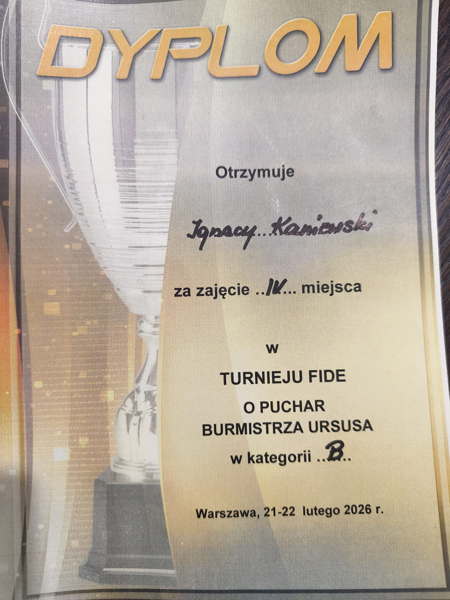 Ignacy Kaniewski zajął I miejsce do lat 10 i IV w całym turnieju w OPENIE B w Turnieju o Puchar Burmistrza Olesińskiego. Zawodnik zdobył 4 punkty z 5 partii, zyskał 40 oczek rankingowych.